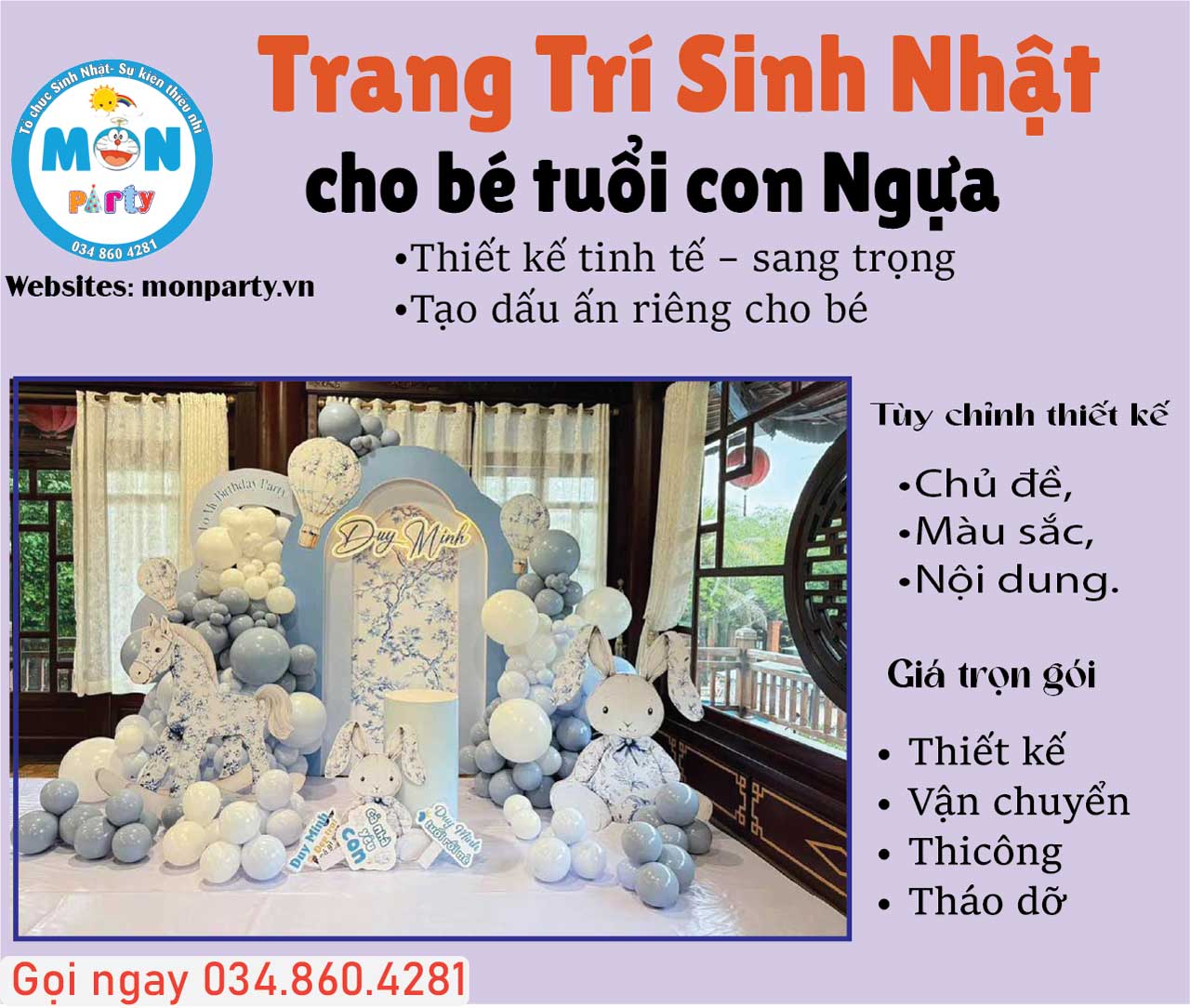 Bé tuổi Ngựa nên decor gì đẹp? Cùng tìm hiểu mẫu trang trí đầy tháng, thôi nôi, sinh nhật cho các bé tuổi ngựa. Để tạo nên không gian tiệc sinh nhật nhẹ nhàng, sang trọng và đầy ý nghĩa cho bé.