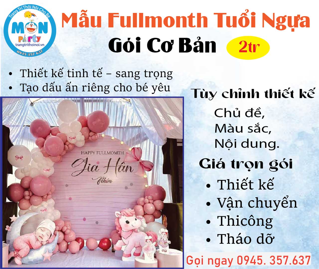 - Đầy tháng bé tuổi Ngựa: Trang trí nhẹ nhàng, sang.