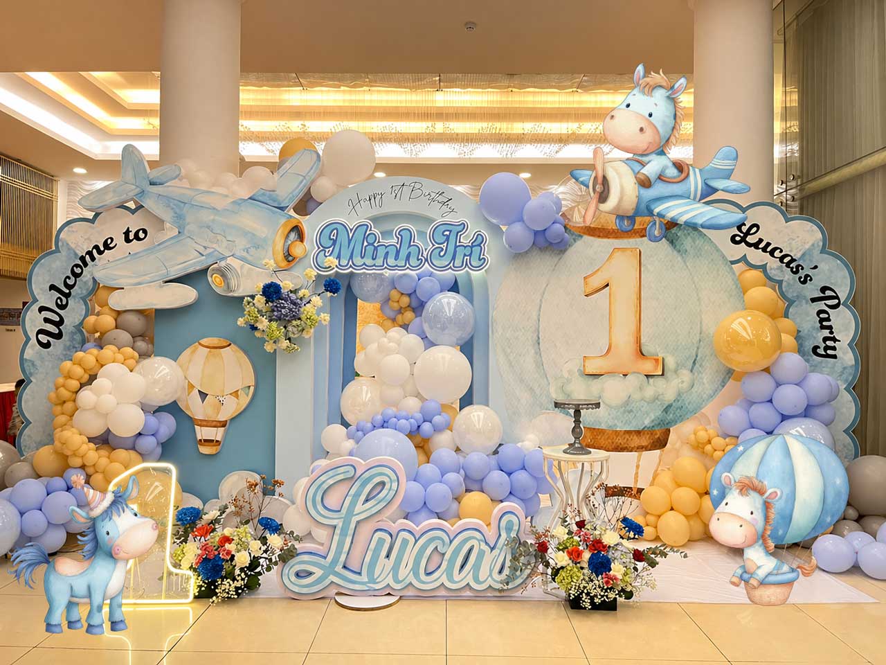 Monparty gợi ý mẫu decor khinh khí cầu có thể trang trí cho bé trai và gái tuổi ngựa.