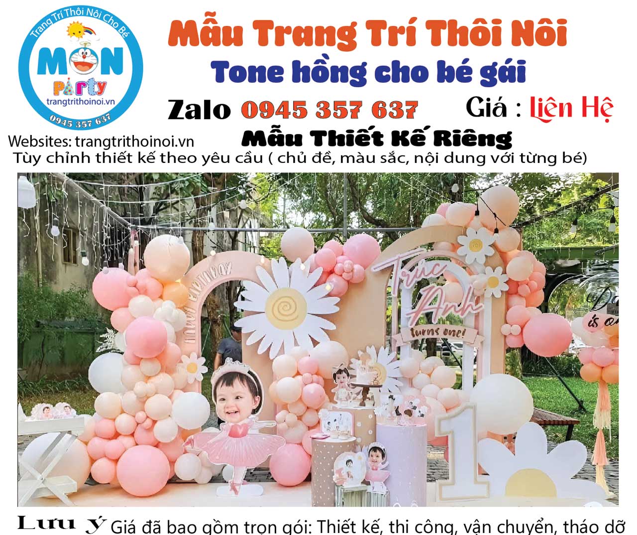 - Tại trangtrithoinoi.vn chúng tôi luôn có nhiều mẫu trang trí đẹp mắt, độc đáo. Các ý tưởng trang trí luôn được thiết kế riêng biệt theo phong cách và chủ đề phù hợp với bé và gia đình.